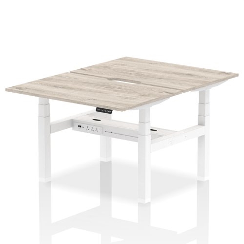Air Back-to-Back 1200 x 800mm Height Adjustable 2 Person Bench Desk Grey Oak Top with Scalloped Edge White Frame